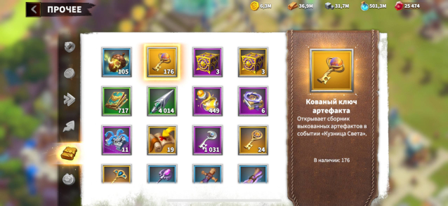 15vip + 25к гемов + 176 кованых ключей артефактов