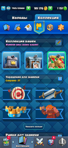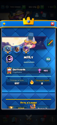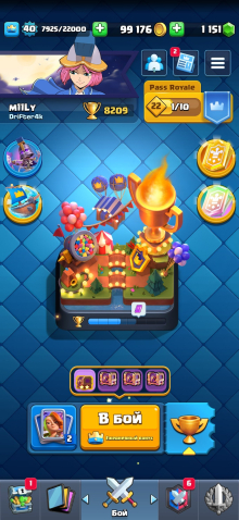 Краткое описание: 🏆8200🏆【🃏120 КАРТ🃏】【💎1151 ГЕМ💎】【🌸4 ЭВО🌸】【💠3 ОСКОЛКА💠】【21 АРЕНА】【28 ЭМОДЗИ】【40 УРОВЕНЬ】