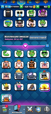 Подробное описание: Фулл акк 121/121 карт 12 Эво 84 эмодзи есть эксклюзивные эмодзи 10 скинов на башню