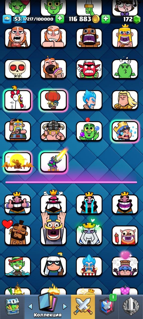 Краткое описание: ⚡ Быстрая ВЫДАЧА 🔮 С ПОЧТОЙ 🔮 КОЛОДА 14-15 ЛВЛ 🔮 56 ЭМОДЗИ 🔮 10 СКИНОВ БАШНИ 🔮 3 ГОДА ИГРЫ 🔮 + BS 🔮