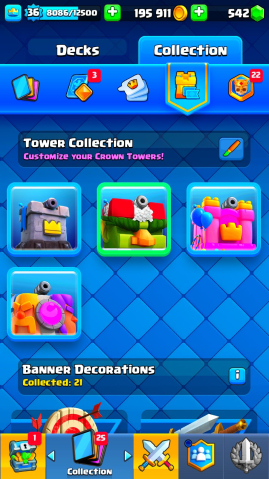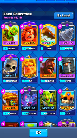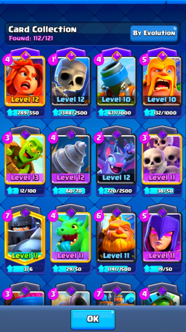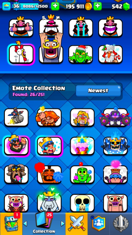 🔳 Открыты легендарки, прокачаны ключевые карты, есть много крутых эмоций и скинов 🎉