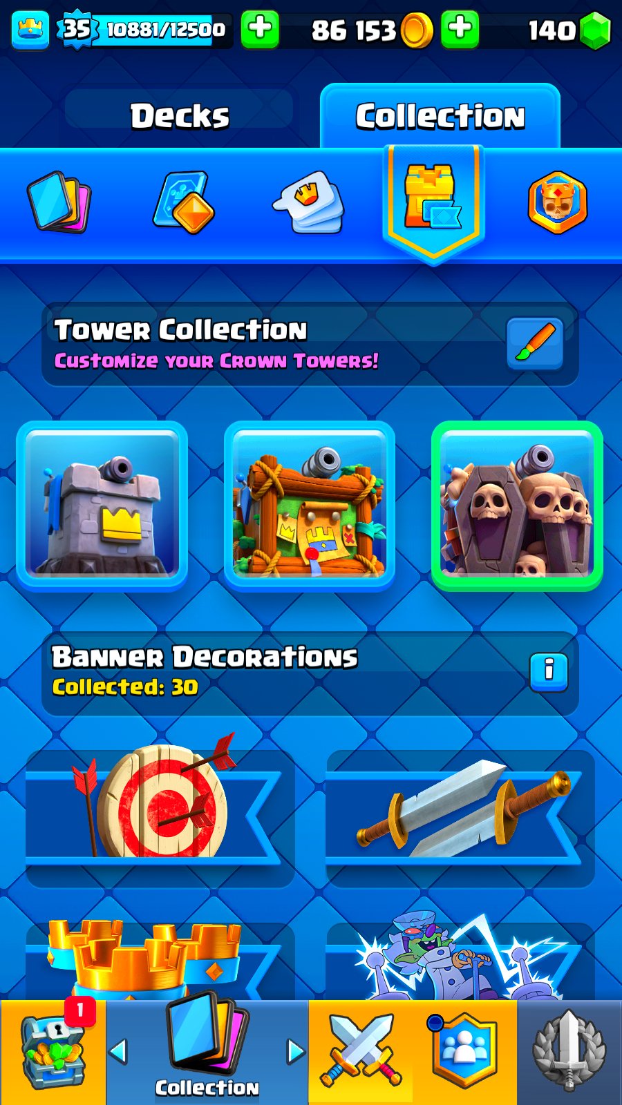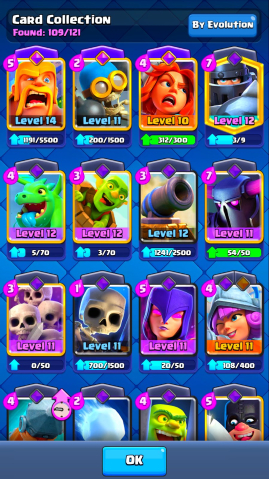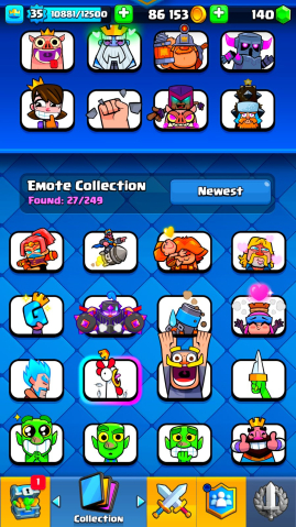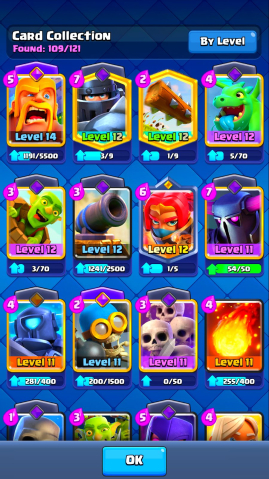 🔳 Открыты легендарки, прокачаны ключевые карты, есть много крутых эмоций и скинов 🎉