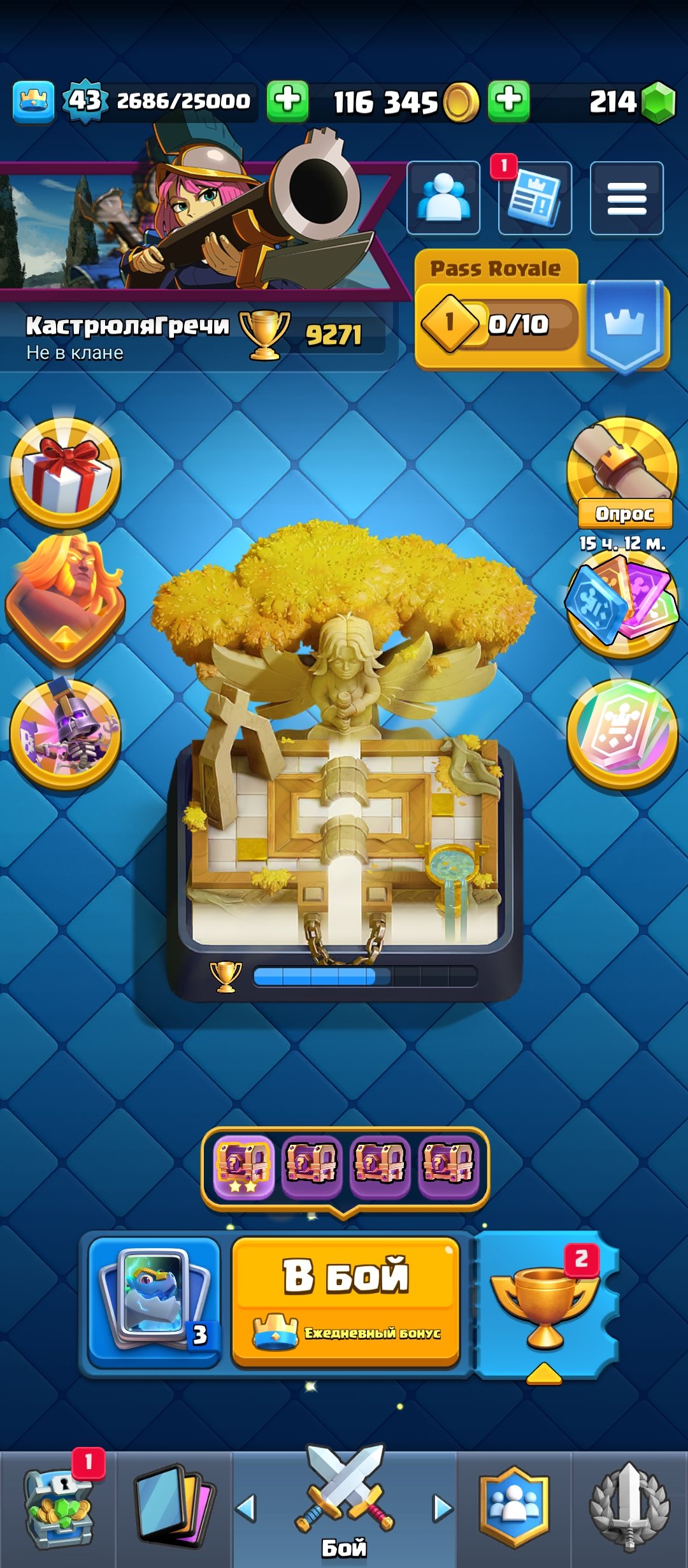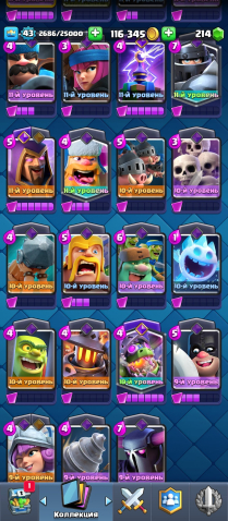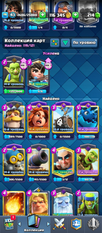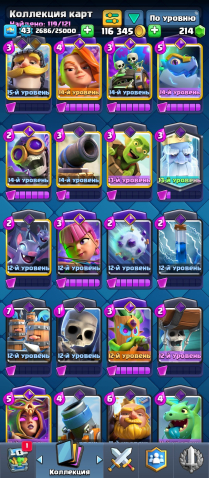 【🏆𝟵𝟯𝟬𝟬🏆】【🔮𝟭𝟭 EVO🔮】【😜𝟯𝟮 ЭМОДЗИ😜】【🃏𝟭𝟭𝟵/𝟭𝟮𝟭🃏】【БП С ДРАКОНОМ🎫】🕹️ОБЗОР🕹️, 23 арена, 43 уровень, 9300 кубков, 119 карт, Нет