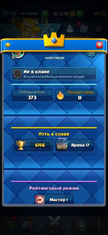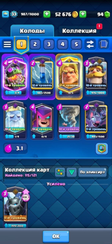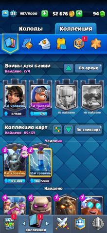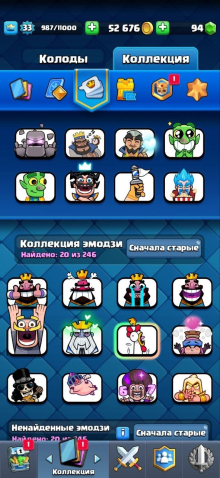 🔮На аккаунте 6150 кубков, 50 000 золота, 94 гемов, 33 Уровень, 11ур башни, 20 эмодзи. 115 карт из 121🔮