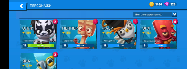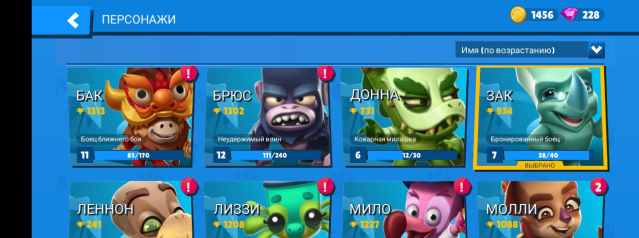 Аккаунт очень прокачанный, много бойцов, на каждом персонаже есть скин, кроме 2.