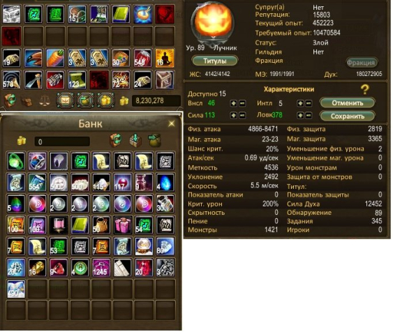 Статы и шмот — скрины.