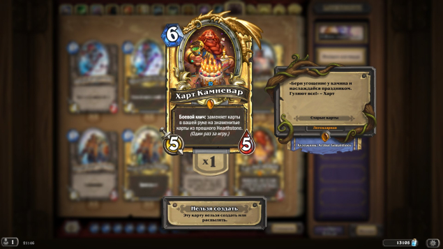 Подробное описание: Легендарных карт 90, среди них 1 золотая вольного формата Харт Камневар