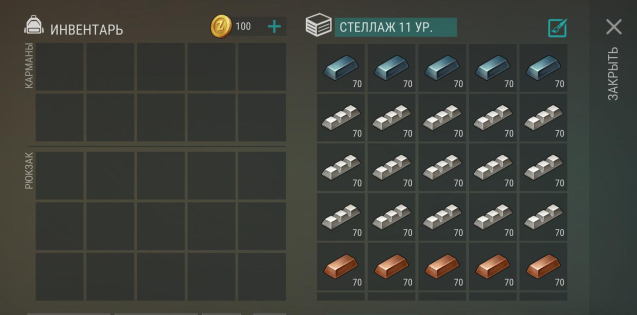 ✅Ресурсы (доски обычные, дубовые, ясеневые; известняк, железо, пластины, резина и др) (7 стеллажей).