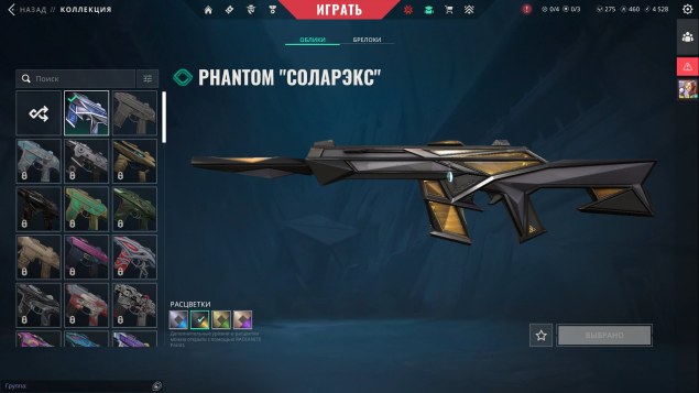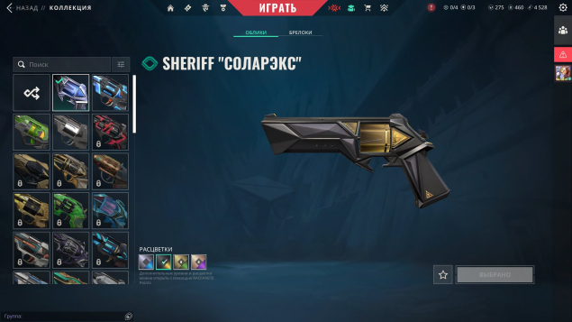 Реликвия Соларэкс | Vandal Чаропанк | Sheriff Соларэкс | Classic ATLAS // CMD | Phantom Соларэкс | Ghost Комета | Odin Соларэкс | Spectre Соларэкс | Sheriff Оверлей | Classic Баббл-поп | Frenzy Дисперсия | Ghost Селестия | Ghost Тактическая вкусняшка | Judge Тактическая вкусняшка | Bulldog Заклятие | Operator Тактическая вкусняшка | Marshal Заклятие | Frenzy Заклятие | Bucky Заклятие | Guardian Тактическая вкусняшка | Sheriff Нанораскол