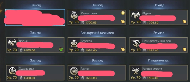 На всех персах много ресов для закалки, на аккаунте около 500к голды обычной + суммарно 15 гемов т4 8лвл