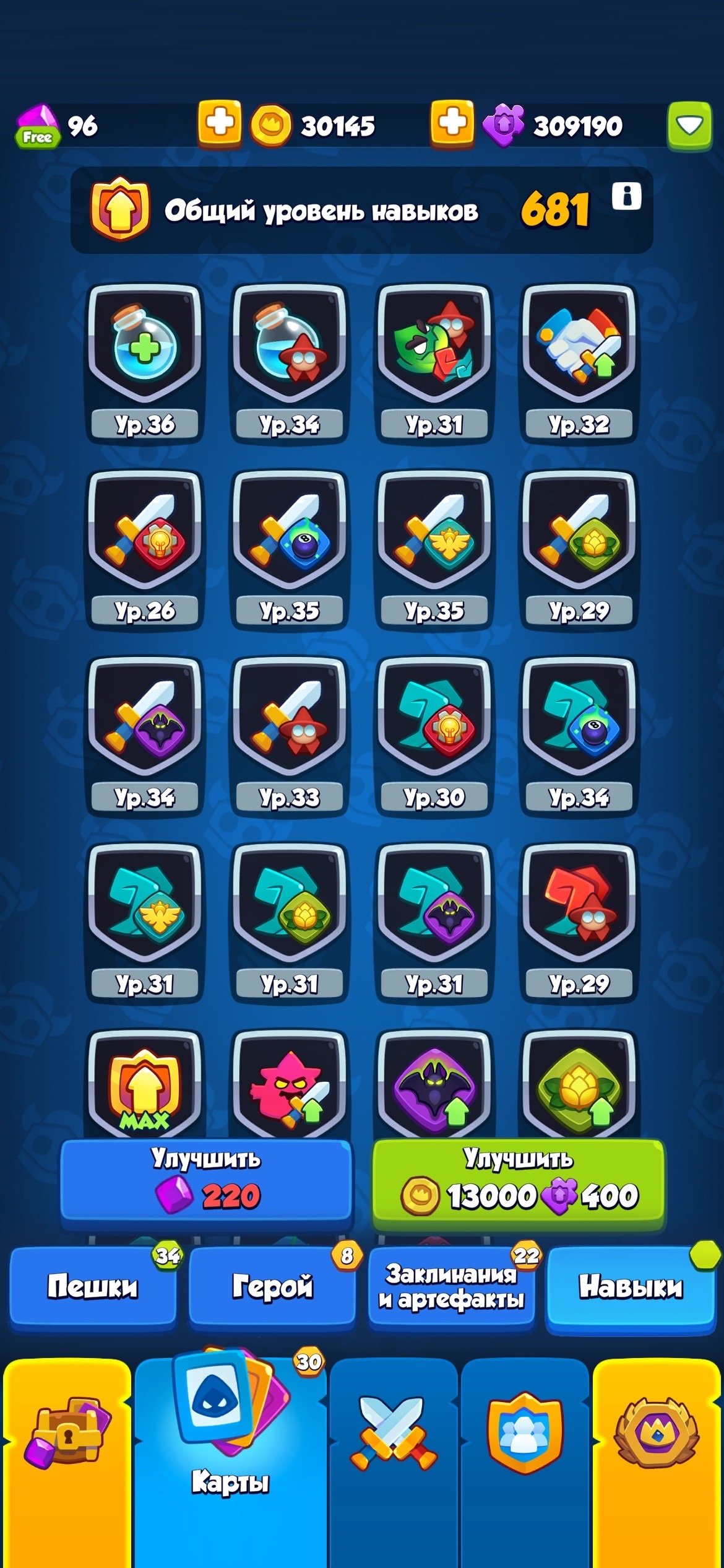 Фулл пешки: Панда, Дриада, Инк, Статуя, Часы, Призыв, Ловчий, Метеор, Утиль, Монах, Меч, Робот