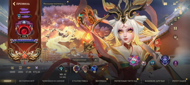 Подробное описание: Акаунту более четырёх лет. 5899 игр. Ранг Алмаз. Есть все персонажи, 28к очков коллекции. 120 обликов (из них 15 лёг).