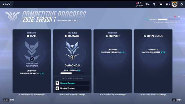 Краткое описание: S1 (2026)🔹 PLAT 2 TANK 🔹DIAMOND 5 DPS🔹JADE GENJI🔹3000 COMP POINT 🔹ENDORSE 4