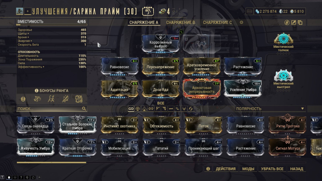 На аккаунте есть все для комфортной игры, включая моды, прайм фреймов и билды к ним. Открыты все синдикаты (но не прокачены).