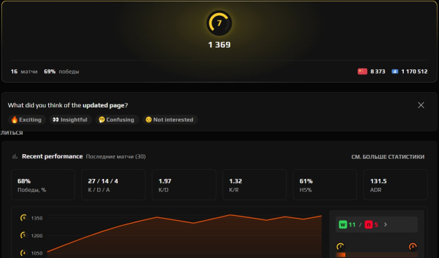 Краткое описание: 💙7 LVL FACEIT 💙 16 матчей 💙69WR%💙1369 ELO💙ПРОЙДЕНА ВЕРИФИКАЦИЯ💙РЕВЕРИФ ВОЗМОЖЕН💙PRIME