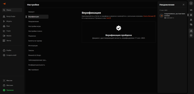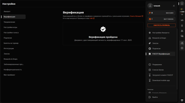 🔹 Faceit: Зарегистрирован, 4 Уровень ( 1000 ELO ), Верифицирован по Паспорту ( Получена Галочка ) ✔️