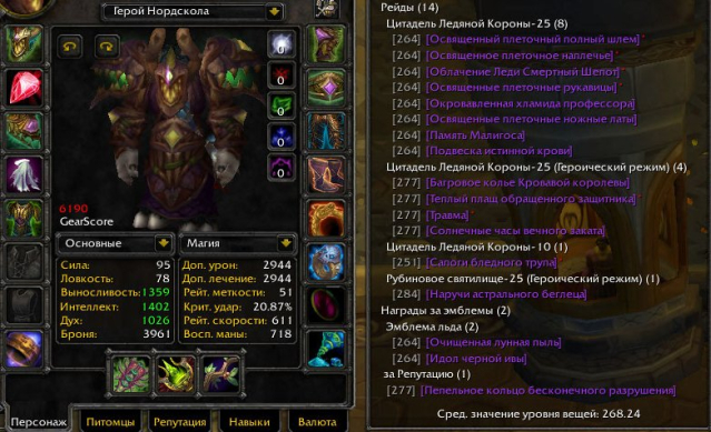 █► ПВЕ РЕСТОР: 6190 ГС, 4\5 Т10 Т2, ТОРС С ЛЕДИ 25 ОБ, НОН СЕТ: ПОЯС С ПРОФА 25 ОБ, СТУПНИ С ПРИНЦОВ 10 ОБ, ШЕЯ С ЛАНЫ 25 ГЕР, СПИНА С ОРКА 25 ГЕР, ЗАПЫ С ХАЛИОНА 25 ГЕР;
