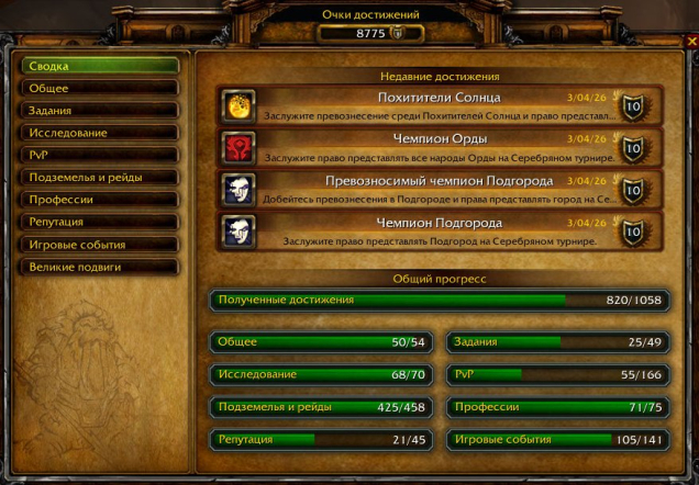 Краткое описание: ⭐8700 АЧИВ, «ГН», 5\5 А8, 6557 ГС ПВЕ + НЕПОБЕДИМЫЙ + 6 ФАМИЛЕК + ТРАНСМОГ + 53 КОИНА + ПЕРЕНОС⭐