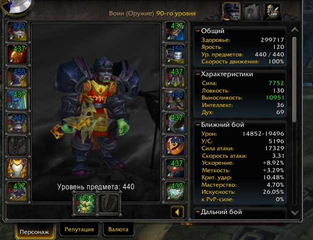 Краткое описание: arms warrior 90lvl, Item lvl 440, Пораженный Ша Эпический комплект, Регион Узбекистан