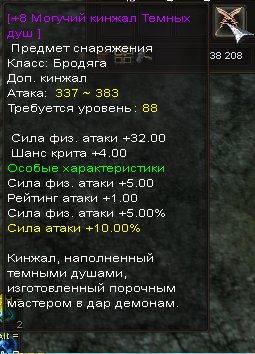 Сервер: Азмара-БлэкФорестКраткое описание: Ред.Кинжал души 3%оз +3физ