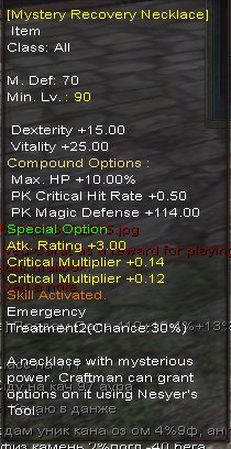 Сервер: Karos Reborn (karos.to) — PandoraКраткое описание: Mystery Recovery Necklace 0,26