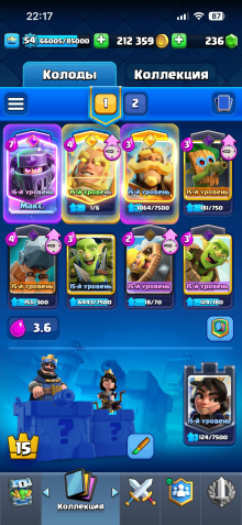 🖤 Средний уровень карт из основной колоды: 15