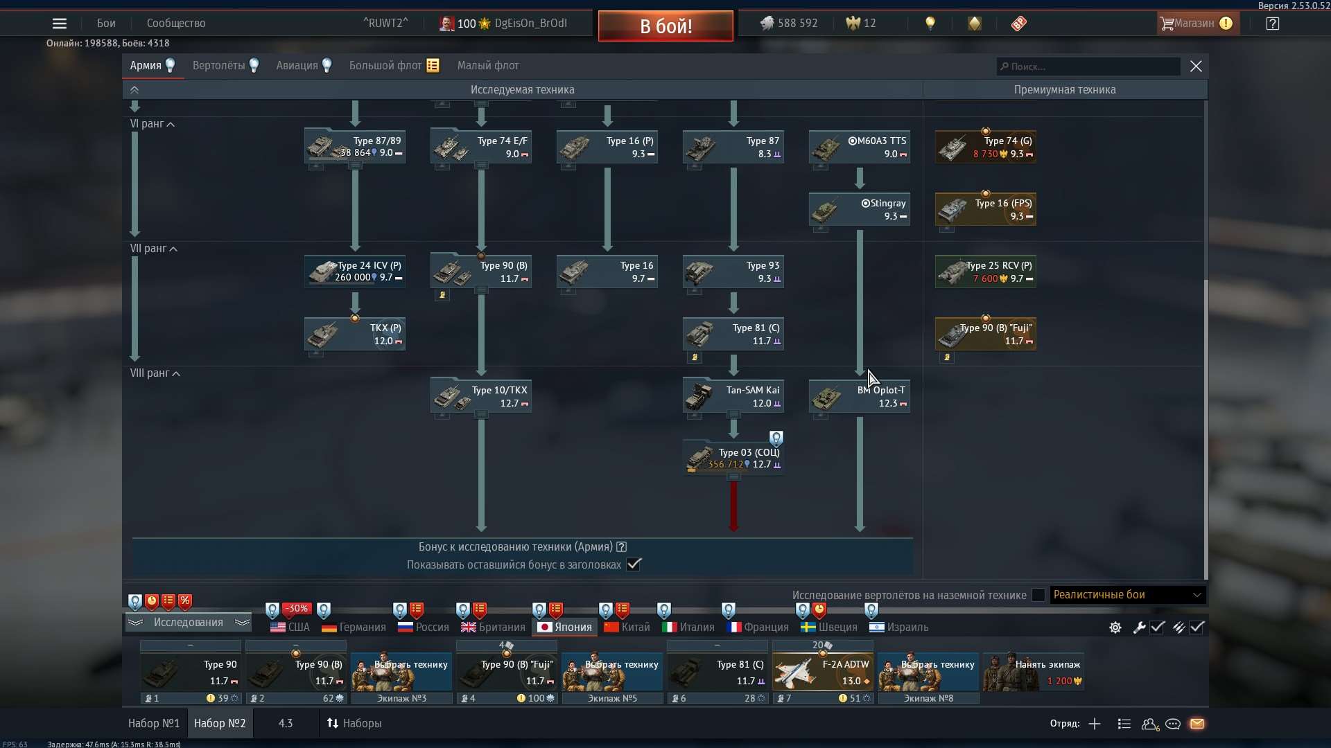 практически на всех нациях есть высоко ранговые танки и самолеты