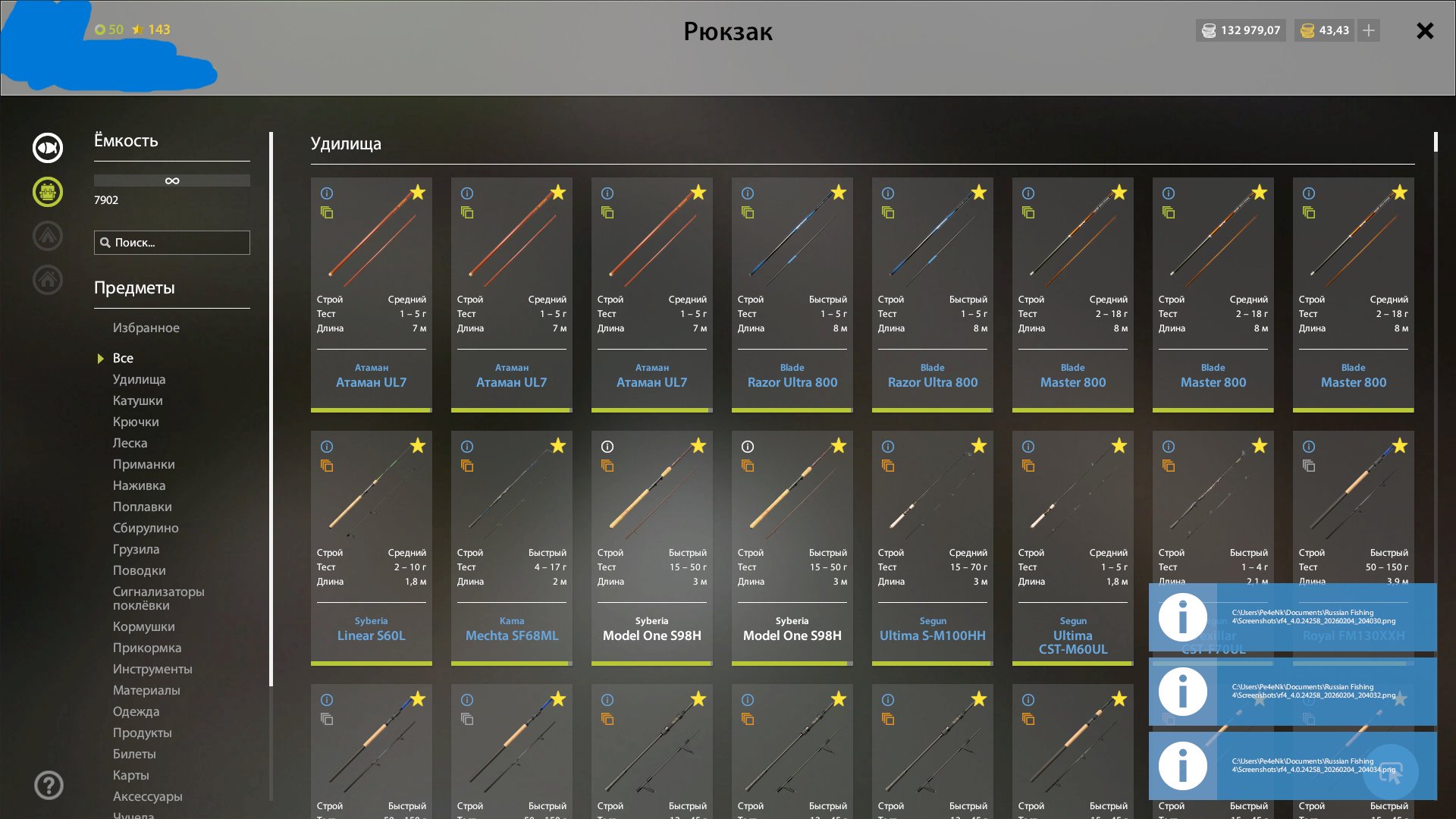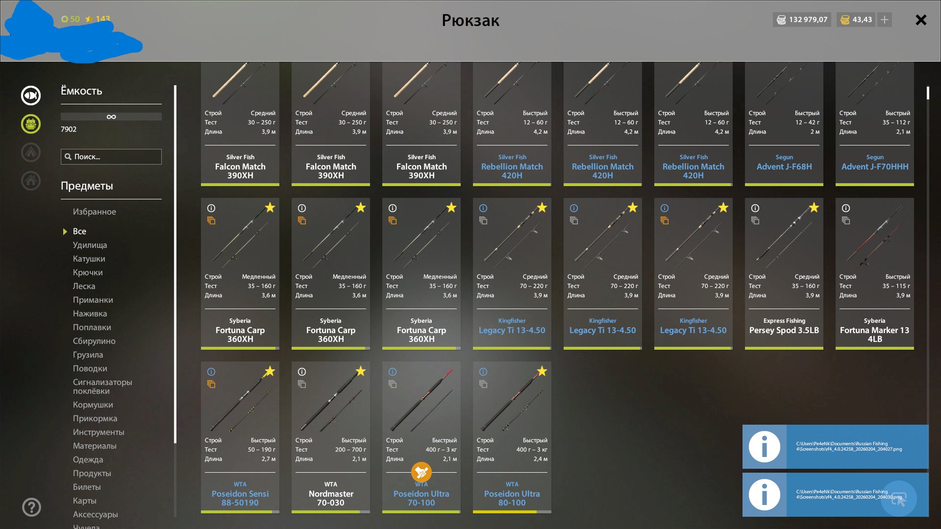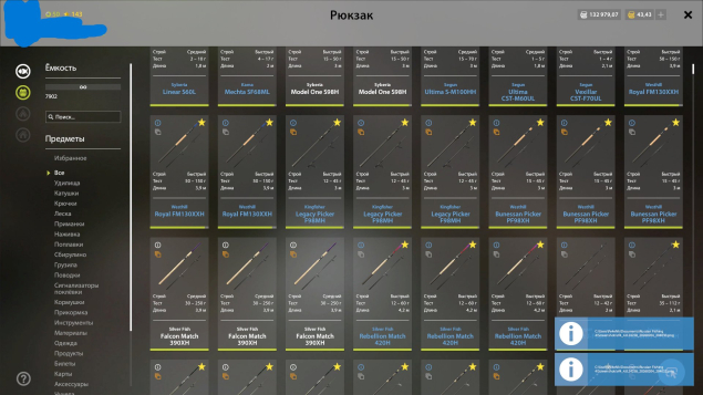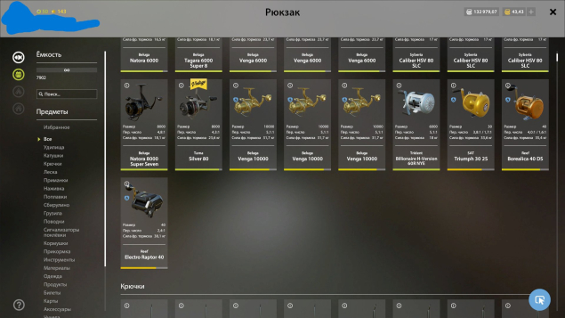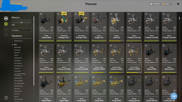 Золото серебро в достатке, куча наживки прикормки приманок хватит на очень много