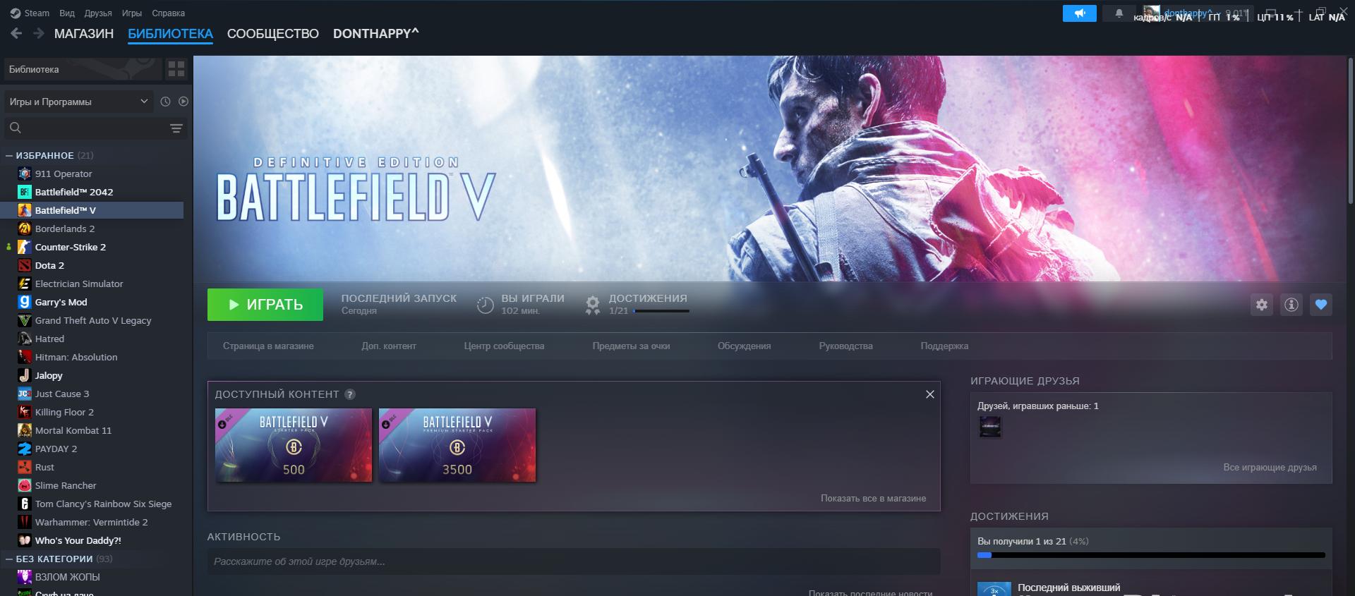Игры на аккаунте: Battlefield 2042, Battlefield 5, GTA 5, Rust, Prime cs2, Mortal Kombat 11. И еще куча игр!!!