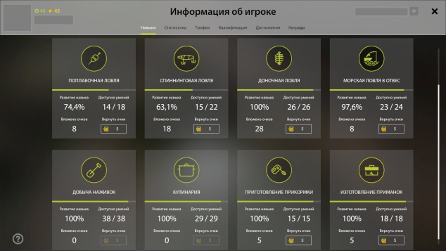 Подробное описание: Личный аккаунт с переносом на вашу почту, 40 лвл. Прокачены все крафты на 100% Донка — 100% МЛО — 97,6% Маховая — 74,4% Спиннинг — 63,1%. Есть удилища и катушки под все виды ловли. Универсальный аккаунт. В инвентаре все подарки за новогодние задания 2025, а так же 3 купона на премиум аккаунт по 7 дней!