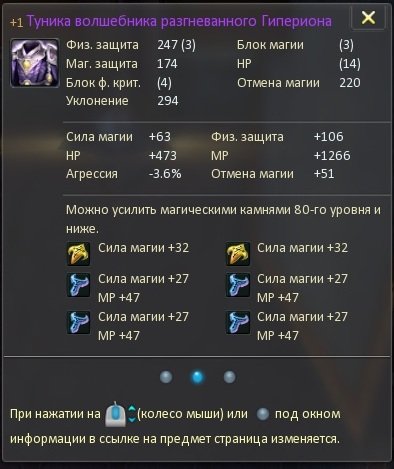 Фул сет гипериона 4 части, (см 32 + см/мп 27/47), 1 часть (сам 32 + см 28) — штаны и плечи +3, торс +1 остальное +0.