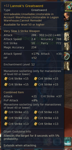 Краткое описание: Lannok GS +12 — Full 40E +10 Atk/Crit + 30pvp extra