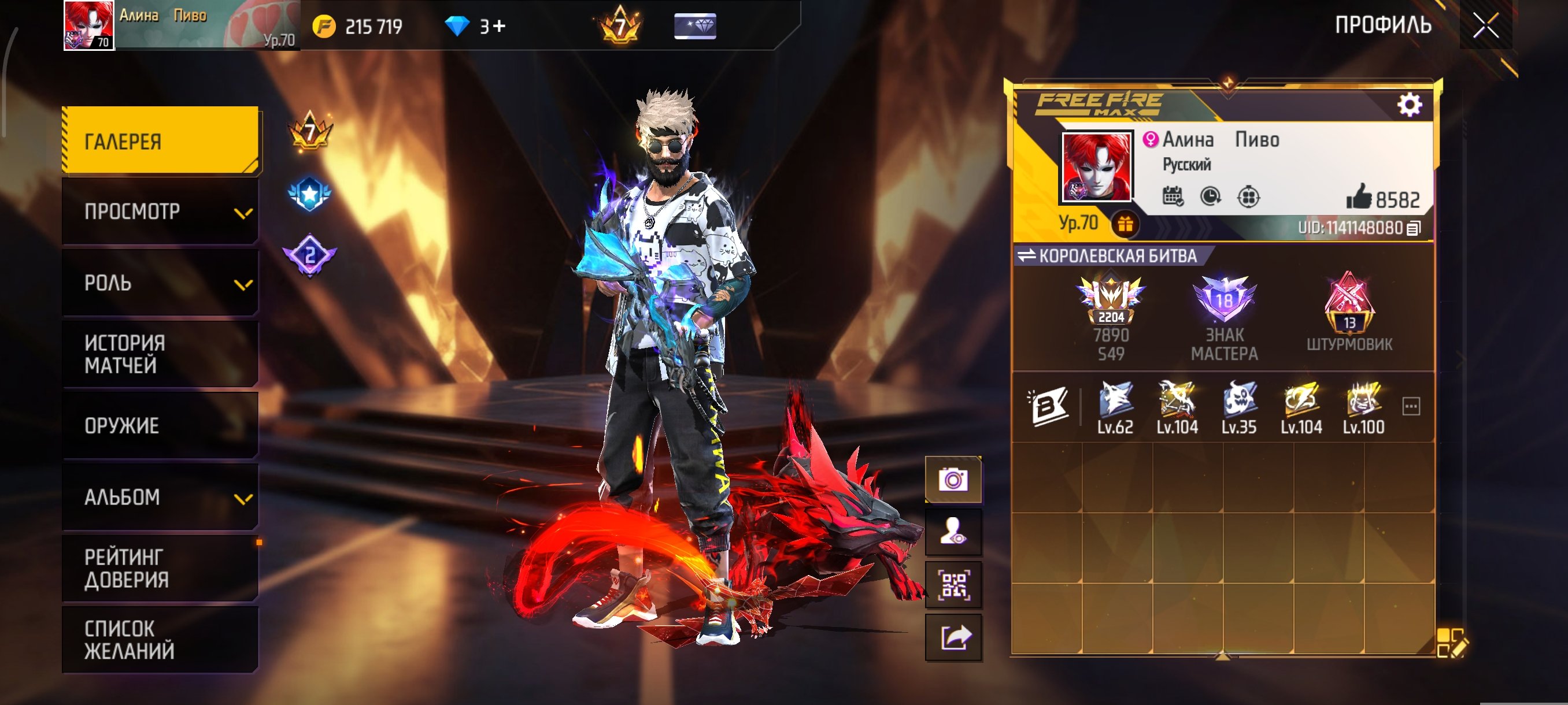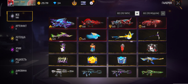 (2 фулл, 2 находятся на 6 уровне прокачки, 2 эволюции 4-5 уровня), множество крайне редких наборов и оружий.