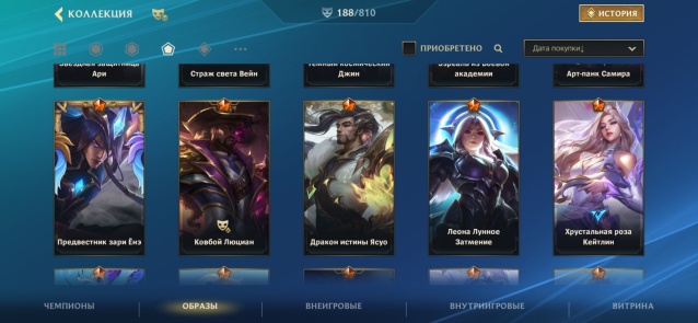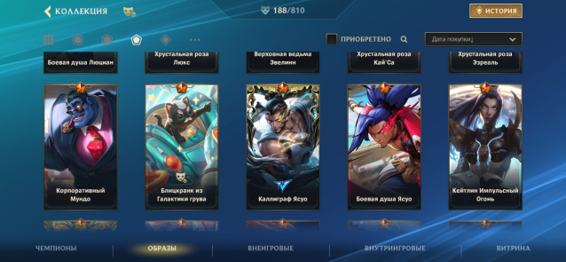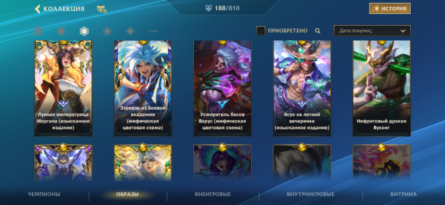Мифики: Люциан ковбой, Эзреаль из боевой академии, Усмиритель бесов Варус, Ясуо на летней вечеринке, Нефритовый дракон Вуконг, Кайса лунная фея, Моргана лунная императрица