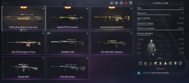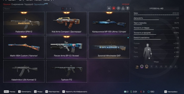 • медик: marlin капитал (22 ур.), kral arms десперадо, золотой winchester sxp (56 ур.), калашников ultima, federation spv-12, panzer arms аниме