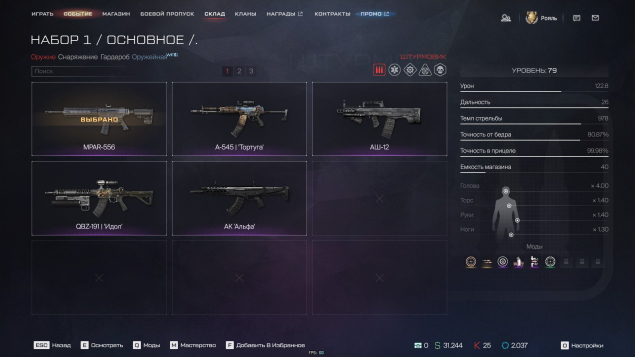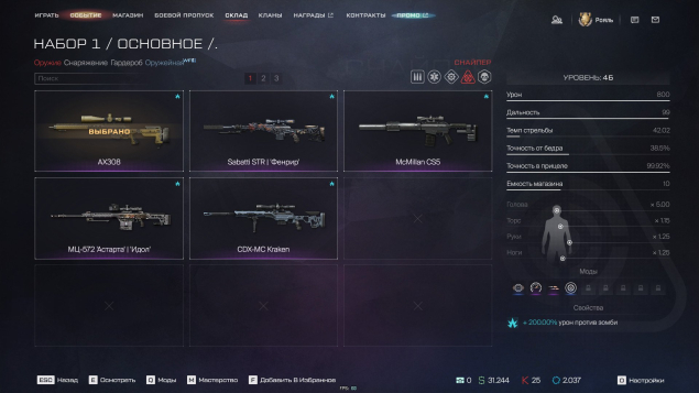Краткое описание: Mail.ru, A-545(60 уровень) ,MPAR556(70 уровень), Kalashnikov Ultima, Amb-17, Ax308, Sabatti Str
