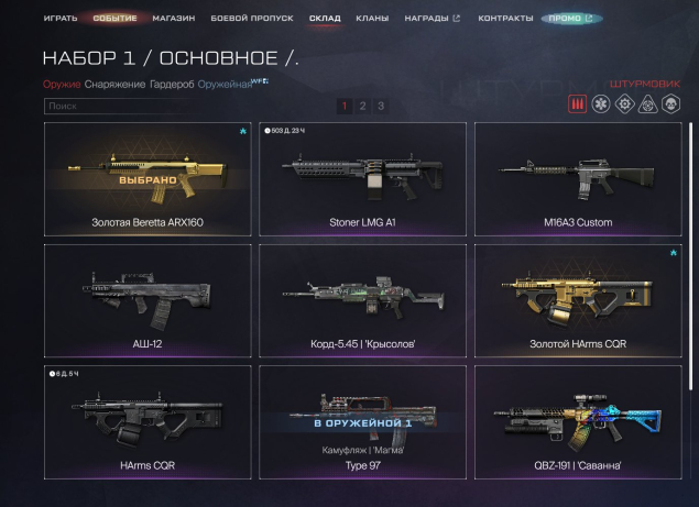 Штрумовик: ✅ЗОЛОТАЯ BERETTA ARX160/ ✅М16А3 КАСТОМ/ ✅АШ-12/ ✅КОРД 5.45 КРЫСОЛОВ/ ✅ЗОЛОТОЙ HARMS CQR/ ✅ТАЙП 97 СО СКИНОМ МАГМА/ ✅QBZ-191 САВАННА