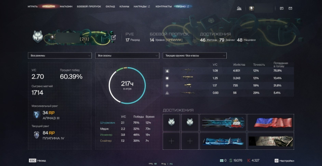 ⭐️ Чистый ник, 250 мясорубок, 208 часов, 4327 кредитов, бк 1000 кредитов, кампания 3/23 (есть доступ к профи PVE и РМ)