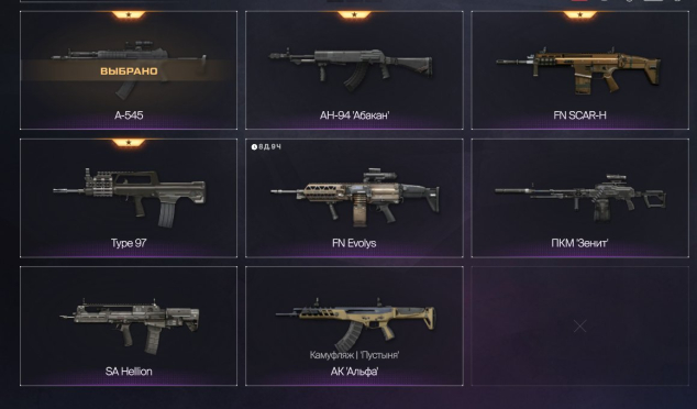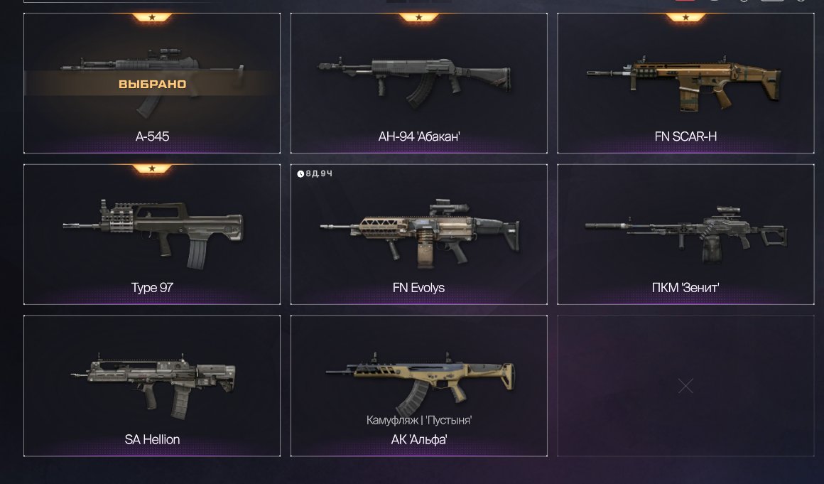 ⭐ А-545 43 lvl (3 мода), Type 97 27lvl (1 мод), АН-94 Абакан 1 lvl, FN SCAR-H 1 lvl