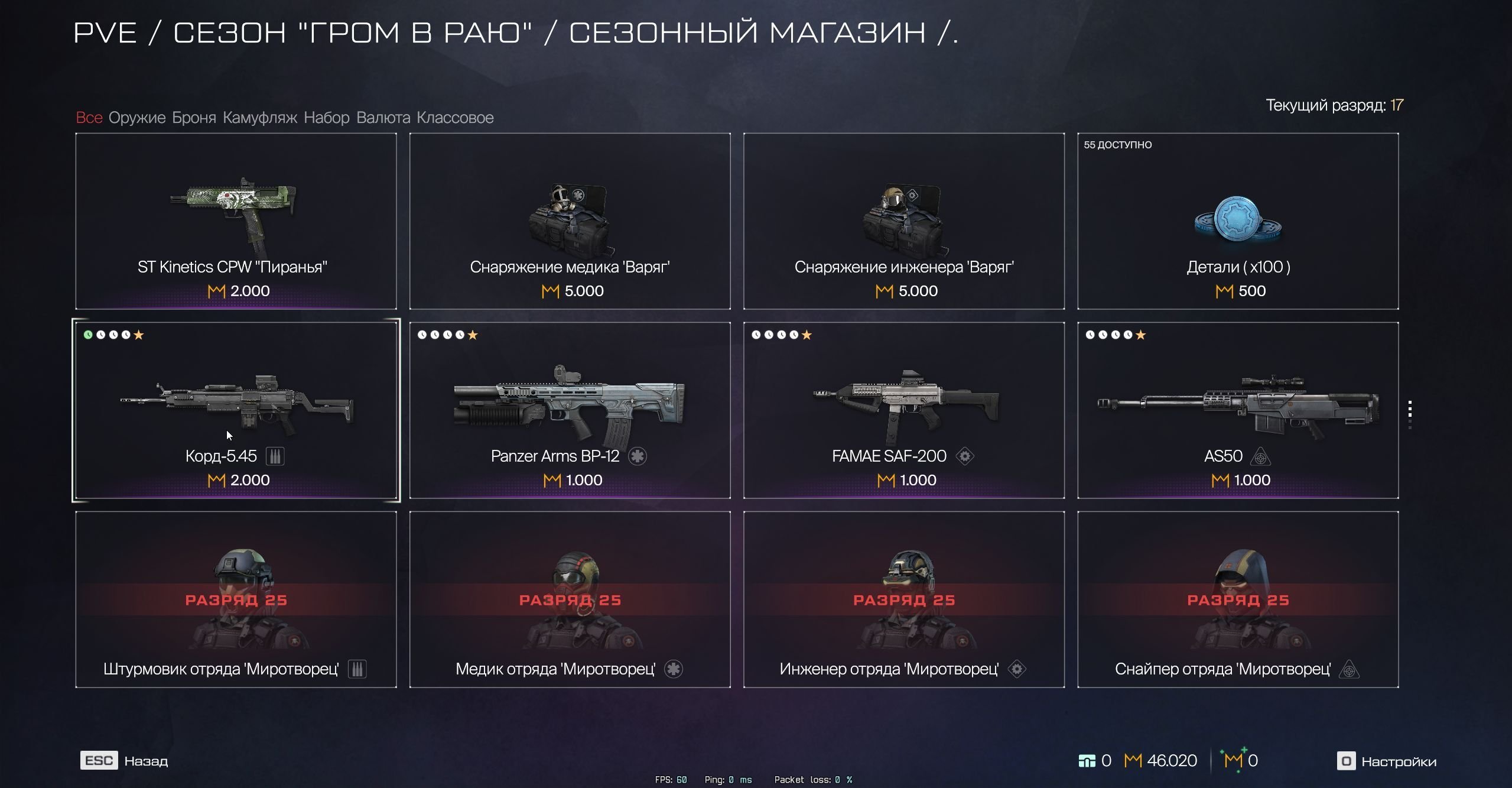 🔶 скины на все классы.лично мой, прокачен мною прокачены грены Нашивки Виртус про Куплен Боевой пропуск ОРУЖИЕ НАВСЕГДА Ак-12, иви, сайга 12с элит, саббати, макмилан, ас 50, пистолет таурус, нож натиск. чистый ник, достяги за пве профи, 46 к корон 17 разряд, можно пве забрать фме на инжа и тд