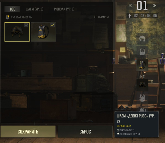 Скины на оружия: 5шт, Скин на рюкзак и шлем