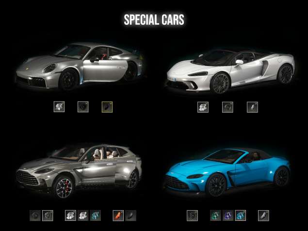 🛑 4 АВТОМОБИЛЯ: Porsche 911 Carrera GTS, Aston Martin DBX707, Aston Martin V12 Vantage Roadster, McLaren GT Standard (Silica White).