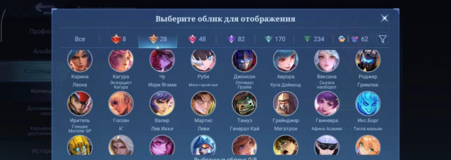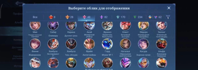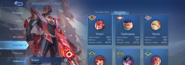 Легендарные скины (8): Мия, Франко, Фрейя, Горд, Лесли, Валир, Грейнджер, Гвиневра;