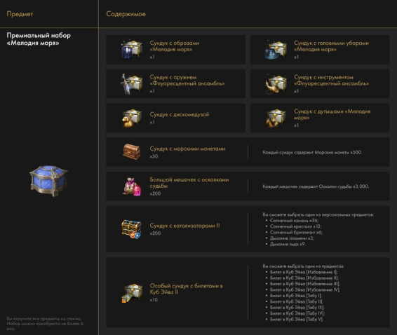 Сервер: (RU) АльдеранКраткое описание: 🟨⚡️🟨 Премиальный набор «Мелодия моря»🟨⚡️🟨
