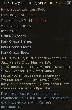 Название: Dark Crystal mage set заточенный на +6 с вставкой attack mastery.