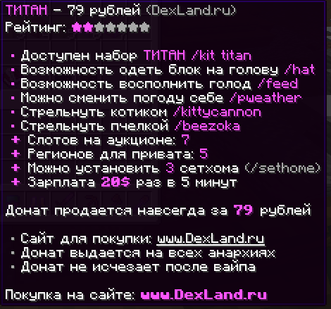 Аккаунт с привелегией на сервере DexLand, стоимость ниже чем на сервере