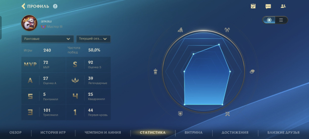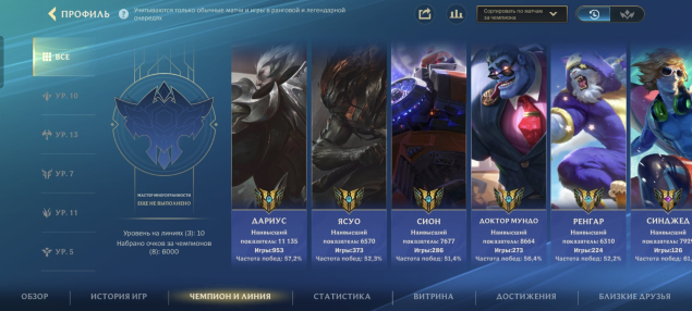 Подробное описание: 138 скинов, куча ресурсов, много брал топов на чемпах, мифик люциан, мифик вейн, лимитированный мифик эзреаль, мифик ене с уникальной позой и куча других скинов, 27к очков коллекции