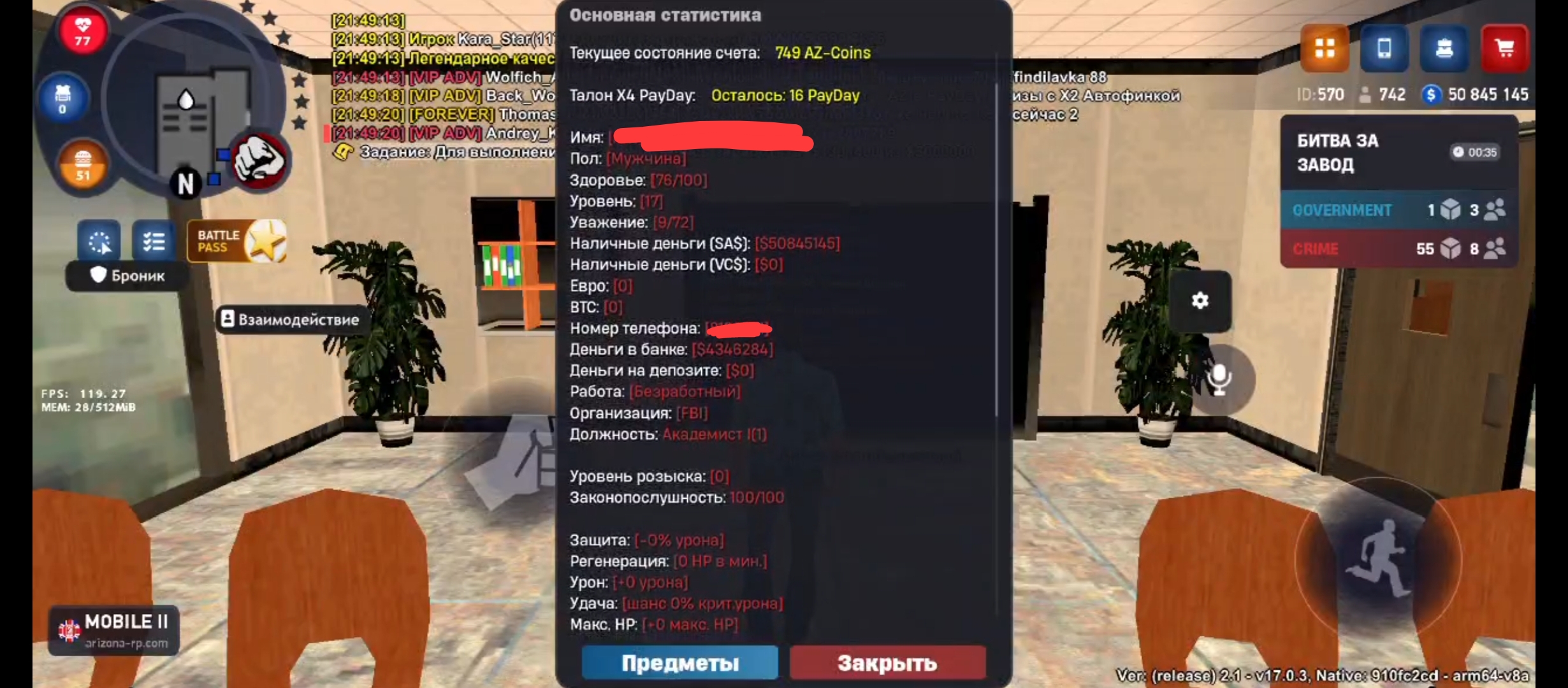👮 Трудоустроен в ФБР — престижная фракция, высокий авторитет, крутые плюшки и доступы
