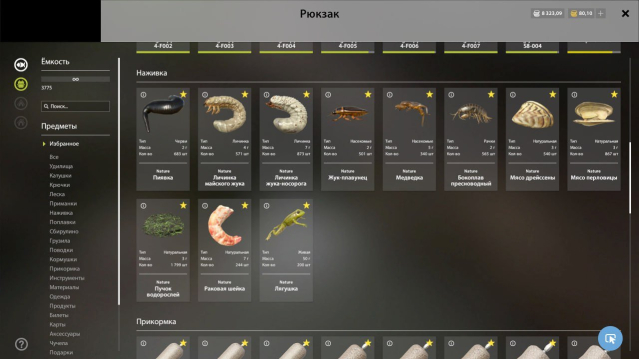 Большое количество голд наживки и 80зм на балансе