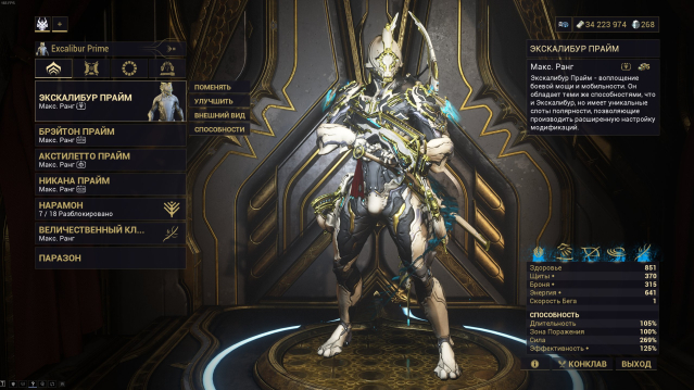 Краткое описание: Экскалибур Прайм, Охотник. Ранг — 1 Легендарный